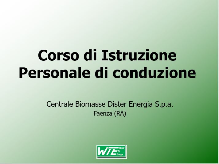W.T.E. organised a training course which would prepare the operators to the conduction of the plant. The course was focused on three items: furnace: combustion and control of pollutant emission; maintenance combustion diagram combustion control and steam production.